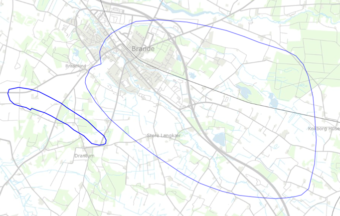 På kortet herunder kan du se, hvilket område vi henter vandet fra.